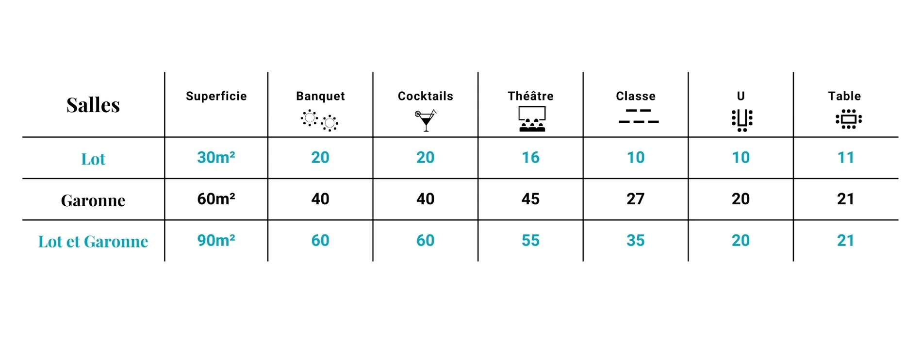 Our two seminar rooms can be modulated to form a single room, the Lot-et-Garonne room, which can accommodate up to 90 people.